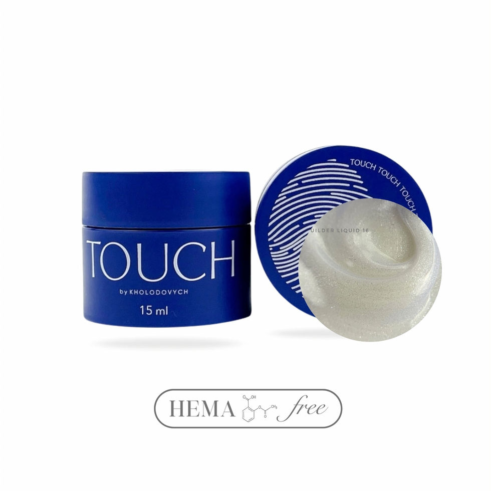 TOUCH BUILDER LIQUID — innovative 2-in-1 product that combines the advantages of builder gel and cover base in one bottle. Ideally suited for rebuilding or strengthening short and medium-length nails. Thanks to its liquid consistency, it self-levels quickly, providing a perfectly smooth surface without extra effort.