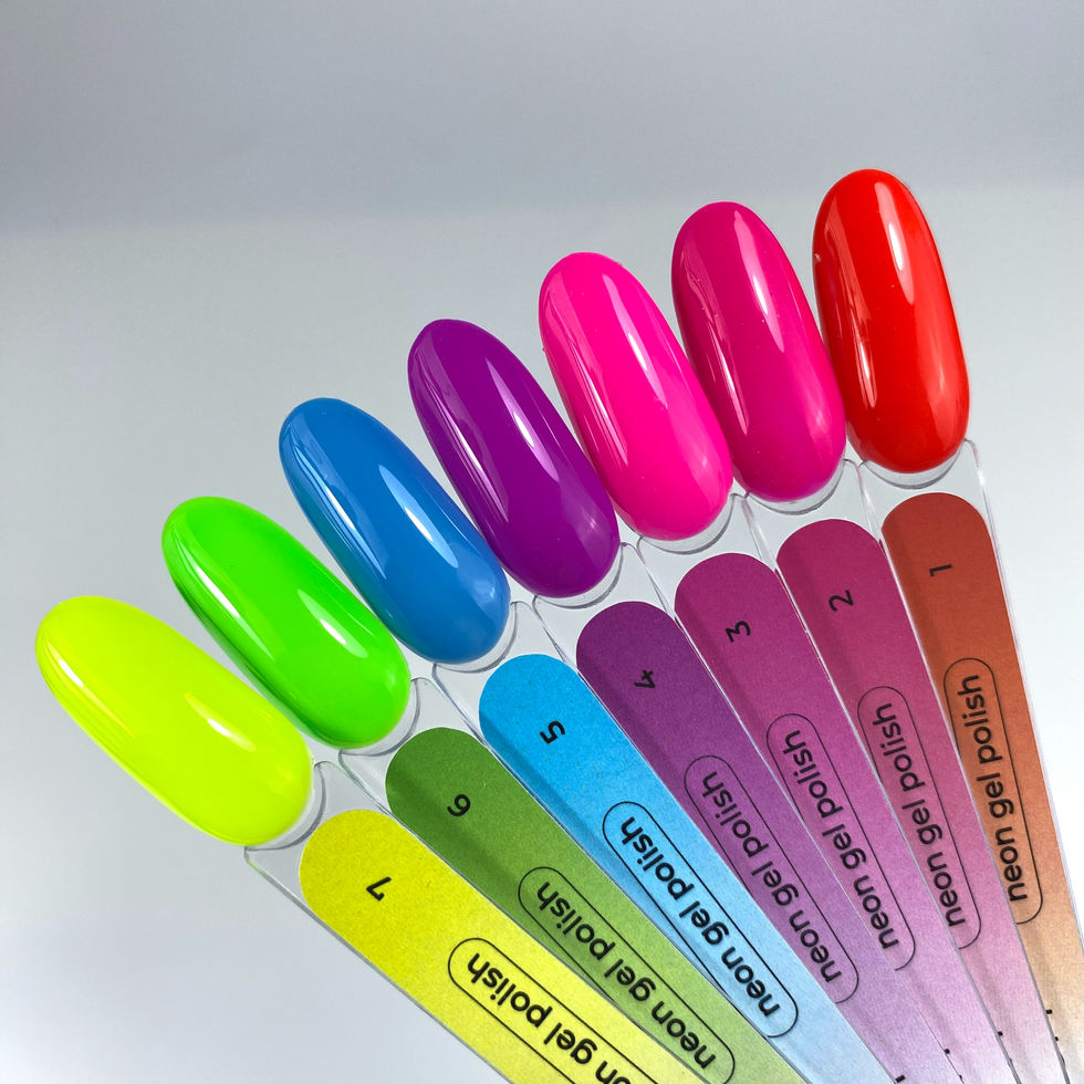 - Apply 2 layers of neon gel polish, curing each layer for 60 seconds in an LED 48W lamp.
